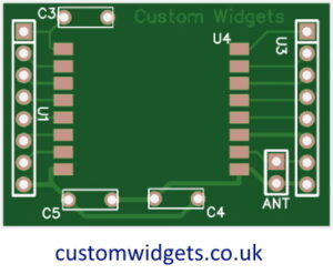 The larger PCB is more flexible (having more antenna options, and component placement positions) – and it will fit wider (or two side-by-side) breadboards – having a header spacing of 13 x 2.54mm. The RFM connections are in-line with the header connections making it a wider PCB.